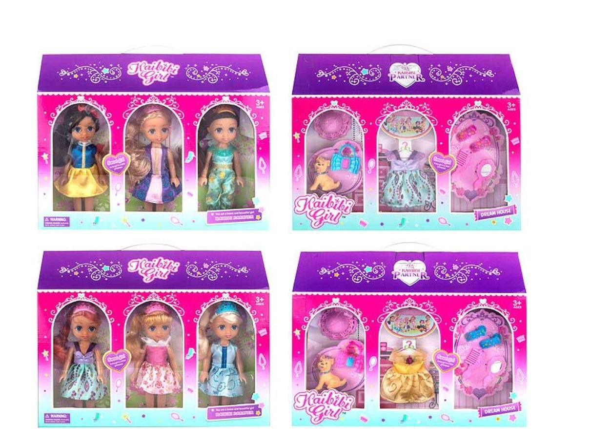 Zestaw 3 laleczek wraz ze strojami dwustronnymi.