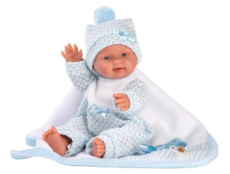W naszej manufakturze wierzymy, że zabawa jest najlepszą nauką. Dlatego też z wielką miłością tworzymy kultowe lalki Llorens, w 100% ręcznie wykonane, o niepowtarzalnych wzorach. Stosowane przez nas tkaniny pochodzą od renomowanych marek odzieży dziecięcej. Wszystkie lalki Llorens są zgodne z europejskimi przepisami dotyczącymi bezpieczeństwa dzieci, co gwarantuje, że Twoje dzieci będą się bawić w możliwie najbezpieczniejszy sposób. Lalka Bebito mierzy 26 cm i jest wykonana z miękkiego w dotyku winylu, dzięki czemu możemy ją zanurzać w wodzie do poziomu szyi. Lalka ma zaznaczoną płeć męską. Bebito ma śliczną, delikatną buzię i niebieskie oczęta. Lalka jest ubrana w ażurowy pajacyk i czapeczkę. Do zestawu dołączony jest kocyk z niebieską kokardką. Lalka została zapakowana w ozdobny karton, więc bez zbędnych dodatkowych opakowań, może być wręczona jako prezent. Kochamy hiszpańskie lalki Llorens!