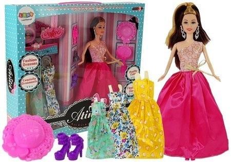 Lalka Bal 28 cm Różowa Sukienka Czy twoje dziecko uwielbia przebierać swoją lalkę ? Zawsze marzy jej się bal, tak jak u księżniczek. Proponujemy lalkę z pięknymi strojami i dodatkami, która sprawi, że dziewczynka przeniesie się w świat bajek i będzie mogła uszykować swoją lalkę na wielkie wyjście. Lalka o wysokości 28 cm mają na sobie przepiękną niebieską suknię wieczorową z elementami złota i brokatu. Posiadają gęste, ciemne, długie włosy, które pięknie wykręcają się na końcach i mała dziewczyna może też pobawić się w fryzjerkę i stylistkę. Jest możliwość, także poruszaniem lalki, ma ruchome ręce i nogi. Kobiecy, lekki makijaż podkreśla wszystkie atuty lalek, zwłaszcza ich duże, niebieskie oczy. Masywne srebrne kolczyki, swobodnie zwisają z uszu, wysokie szpilki dodają klasy i szyku. Jest także możliwość zmiany kreacji, 3 różne sukienki, dają wybór. Teraz ty i twoja lalka możecie się wybrać na bal ! Elementy zestawu: - lalka - 3 sukienki (żółta w serduszka, zielona w kwiaty, biało niebiesko- żółta) - torebka - lusterko - szczotka do włosów duża i mała - kapelusz - 2 pary szpilek - perfumy - kolczyki Wymiary lalki: 29 cm x 7 cm x 4 cm Wymiary opakowania: 36,5 cm x 33,5 cm x 7 cm Lalki wieczorowe wykonano z bezpiecznego, certyfikowanego materiału, który jest gwarancją bezpieczeństwa płynącego z korzystania. Ze względu na małe elementy, takie jak buciki lalki, zabawka przeznaczona jest dla dziewczynek, które ukończyły 3. rok życia.