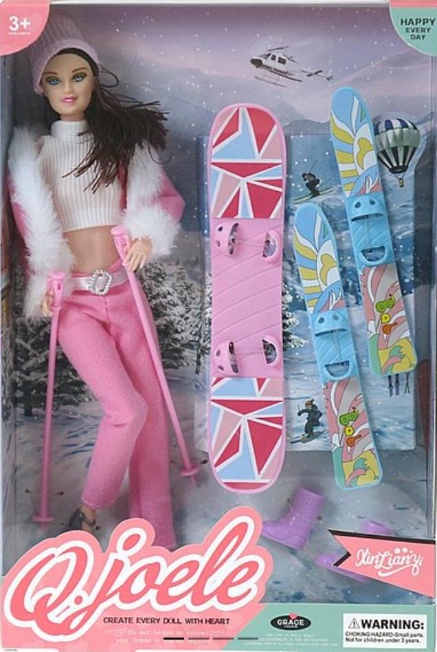 Lalka 29cm z deską snowboardową i nartami