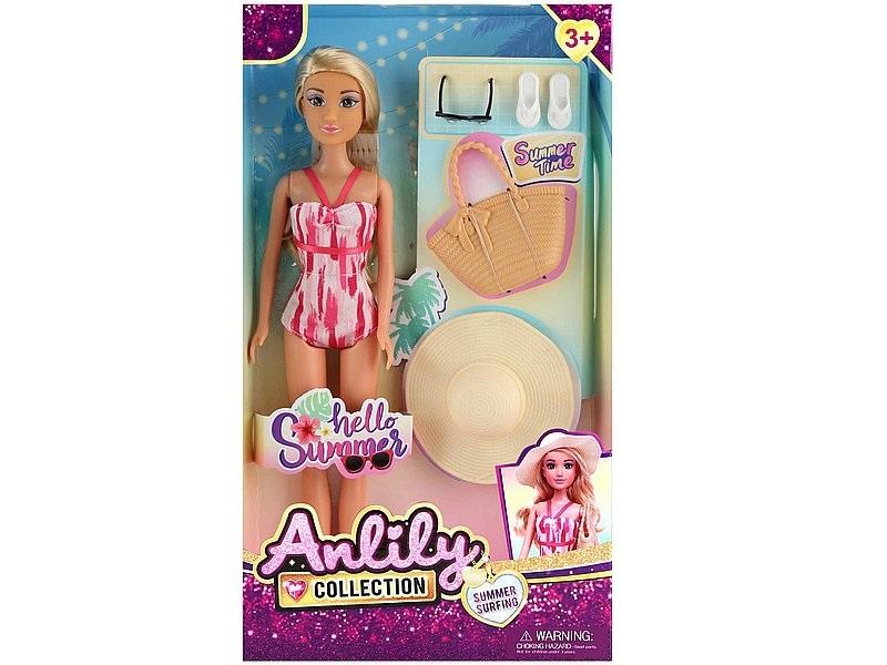 Lalka 29cm z zestawem ubrań plażowych; 32x18x5cm, W/B