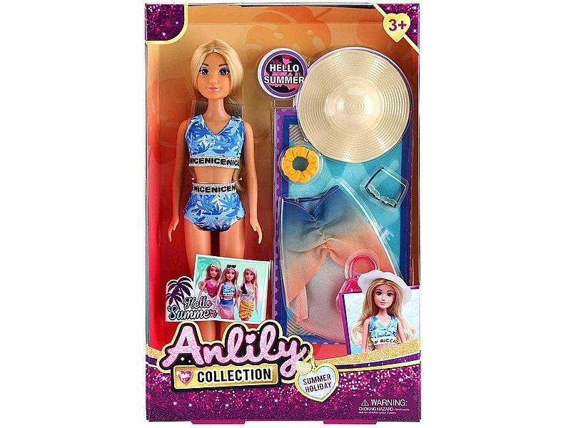 Lalka 29cm z zestawem ubrań plażowych; 32x21x5cm, W/B