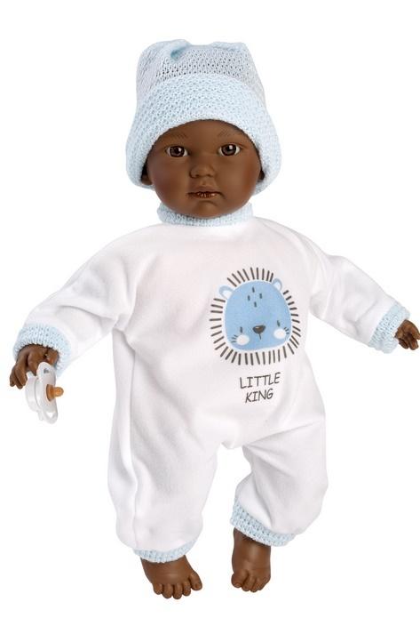 W naszej manufakturze wierzymy, że zabawa jest najlepszą nauką. Dlatego też z wielką miłością tworzymy kultowe lalki Llorens, w 100% ręcznie wykonane, o niepowtarzalnych wzorach. Stosowane przez nas tkaniny pochodzą od renomowanych marek odzieży dziecięcej. Wszystkie lalki Llorens są zgodne z europejskimi przepisami dotyczącymi bezpieczeństwa dzieci, co gwarantuje, że Twoje dzieci będą się bawić w możliwie najbezpieczniejszy sposób. Lalka płacząca Cuqui mierzy 30 cm. Jej rączki, nóżki oraz głowa są wykonane z miękkiego w dotyku winylu, zaś brzuszek jest materiałowy. Po naciśnięciu brzuszka lalka zacznie płakać i wołać ?mama? ?papa?. Cuqui ma śliczną, egzotyczną urodę i duże, brązowe oczęta. Lalka jest ubrana w pajacyk ze słodkim nadrukiem lwa oraz niebieską czapeczkę. Lalka została zapakowana w ozdobny karton, więc bez zbędnych dodatkowych opakowań, może być wręczona jako prezent. Kochamy hiszpańskie lalki Llorens!