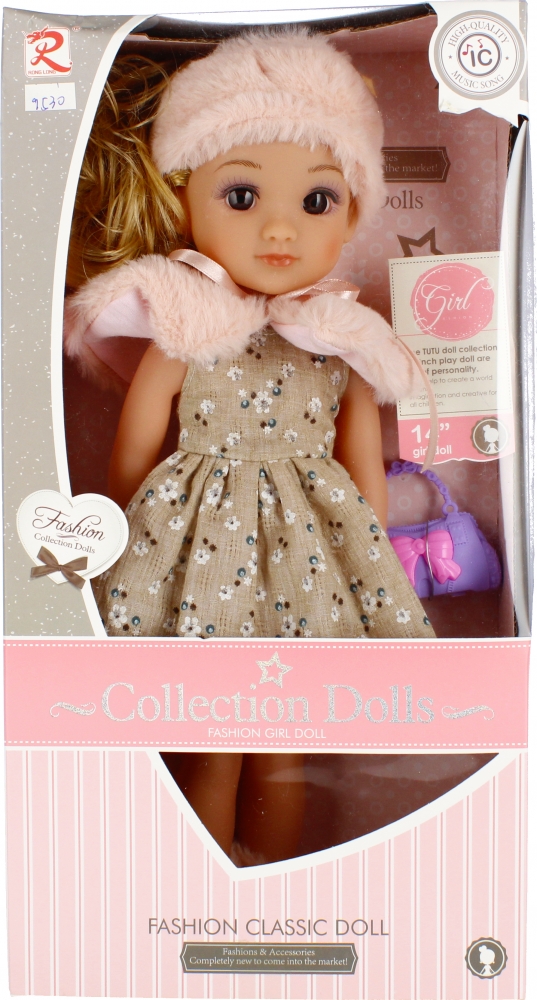 Zalety produktu rozwijanie wyobraźni dziecka, rozwijanie zdolności manualnych, efekty dźwiękowe- śpiewa piosenki, ubrana w sukienkę, futerko oraz czapkę na nogach ma skarpetki, włosy związane w kucyk.