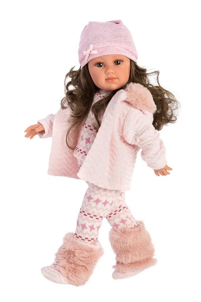 Lalka Helene 42 cm została ręcznie wyprodukowana przez hiszpańską fabrykę lalek pana Llorensa. Helene jest brunetką o kręconych długich włosach. Jej lekko zaróżowione policzki, długie rzęsy zdobiące oczy oraz malutki nosek sprawiają, że lalka wygląda jak prawdziwe dziecko. Jej stylizacja to modny sportowy strój na chłodniejsze dni-komplet spodnie i bluza oraz czapka, kurtka i buty wykończone futerkiem. Całe ciało Helene zostało wykonane z przyjemnego w dotyku winylu, co umożliwia kąpanie lalki zanurzając ją w wodzie do poziomu szyi. Jej rączki, nóżki i głowa są przegubowe- jest to nowe rozwiązanie w wybranych lalkach Llorens, które pozwala obracać kończyny lalki we wszystkich kierunkach. Helene została zapakowana w ozdobny karton. Kochamy hiszpańskie lalki Llorens!