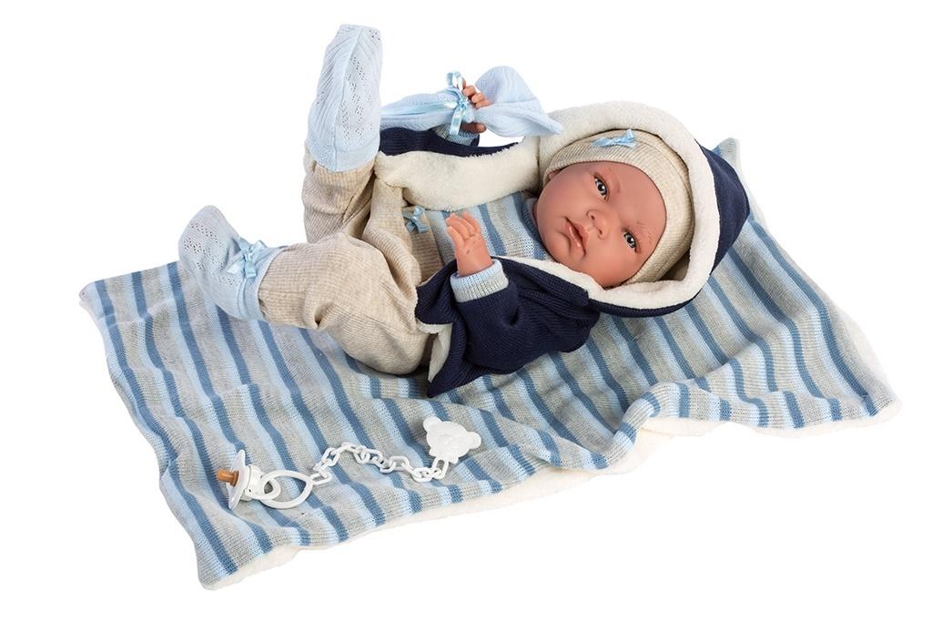 Lalka 73857 bobas Nico na kocyku w paski 38cm