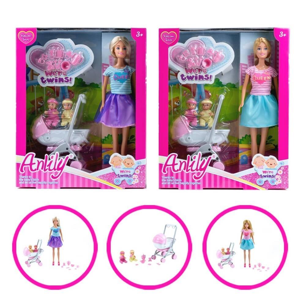 Lalka Anlily 30 cm z bliżniakami i wózkiem