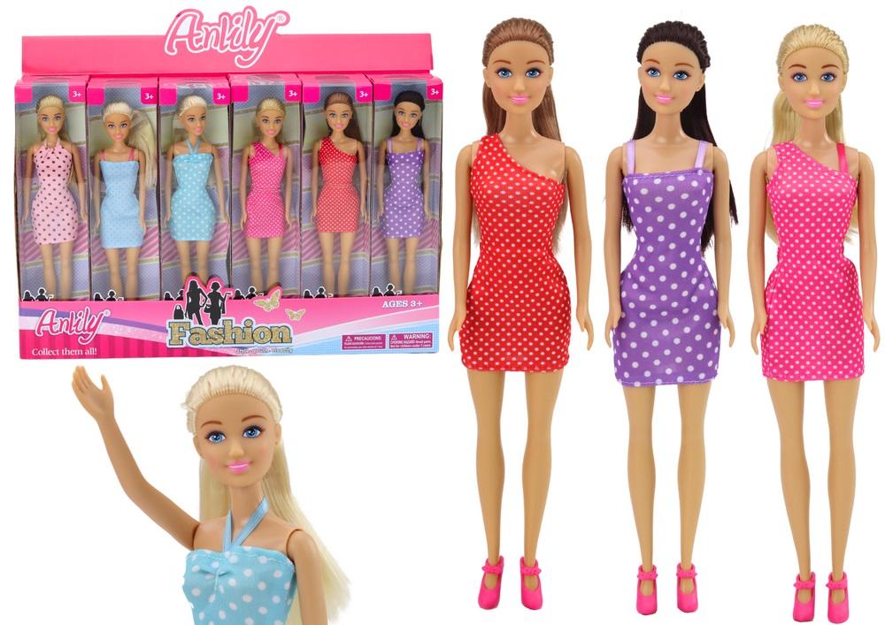 Lalka Anlily W Sukience Fioletowa Różowa Niebieska Czerwona Lalka Anlily w sukience to niezwykle urocza i kreatywna zabawka, która zapewni godziny niekończącej się zabawy i rozrywki dla każdej małej miłośniczki lalek. Każda lalka w zestawie przybywa w innym, wyjątkowym stroju, nadając jej unikalny charakter. Dzięki szerokiej gamie kolorów i wzorów sukienek, każde dziecko może znaleźć swoją ulubioną kombinację. W kolekcji sukienek znajduje się jasnoróżowa z brązowymi kropkami, niebieska z różowymi kropkami, fioletowa, niebieska z białymi kropkami, różowa z białymi kropkami oraz czerwona. Każda sukienka ma swoje niepowtarzalne detale, które nadają jej wyjątkowy urok i sprawiają, że lalka prezentuje się niezwykle uroczo i stylowo. Dodatkowo, lalki Anlily charakteryzują się długimi włosami, co daje możliwość tworzenia różnorodnych fryzur i stylizacji. Dziecko może bawić się, układając i zaplatając włosy lalek, co rozwija kreatywność i zdolności manualne. Lalka Anlily w sukience to nie tylko zabawka, ale również doskonała towarzyszka do kreatywnej zabawy i rozwijania wyobraźni. Dzięki różnorodności sukienek i długim włosom, każde dziecko może stworzyć wspaniałą kolekcję swoich własnych historii, pełnych magii i przygód. Przed zakupem prosimy o wybór lalki, spośród wymienionych kolorów sukienek. W opakowaniu zbiorczym znajduje się 12 Sztuk. Lalki sprzedawane osobno Wymiary lalki: 30cm x 8cm x 3cm Wymiary opakowania: 32cm x 8cm x 4,5cm Wymiary opakowania zbiorczego: 49,5cm x 32,5cm x 10cm Posiada certyfikat CE, ponadto jest zgodny z normą EN71. Przeznaczony dla dzieci powyżej 3 roku życia.