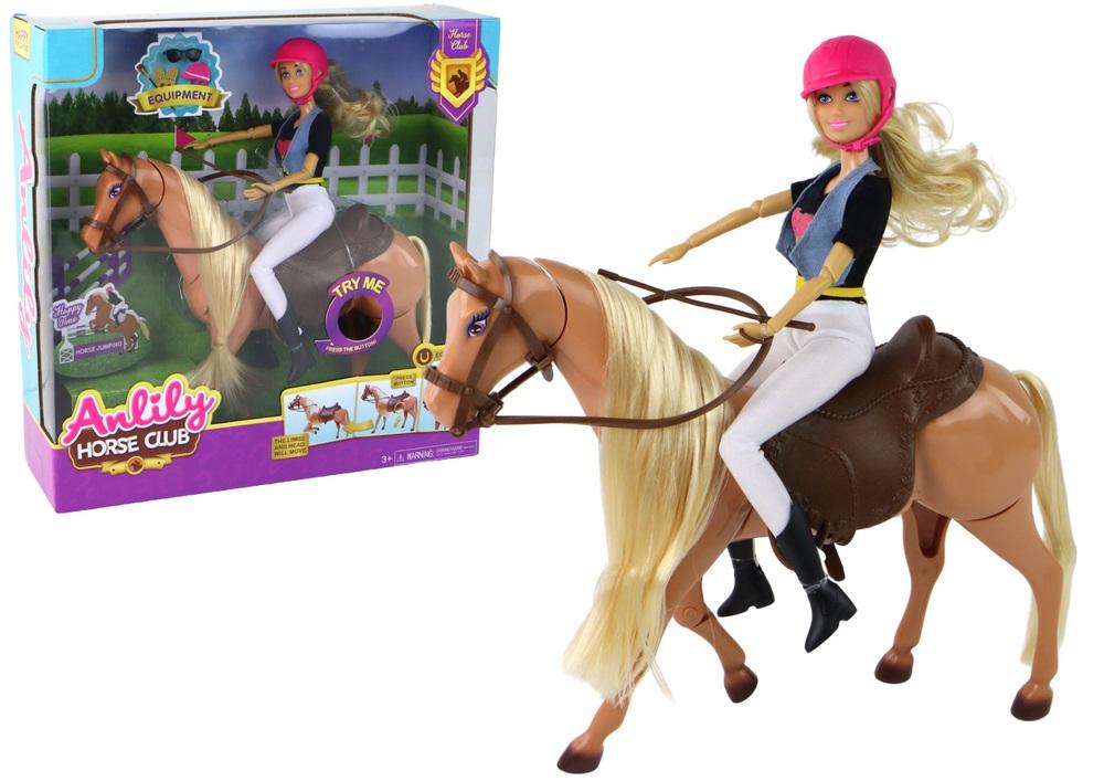 Lalka Anlily Z Koniem Rumak Brązowy Jazda Konno Ruchomy Pragniemy zaprezentować Państwu niezwykły zestaw, który przyniesie dzieciom wiele radości i kreatywnej zabawy. Nasz Zestaw Lalka Anlily z Koniem to idealna propozycja dla małych pasjonatów koni, umożliwiając im przeniesienie się w świat uroczych przygód jeździeckich. Lalka Anlily w tym zestawie zachwyca nie tylko swoim urokiem, ale również funkcjonalnością. Dzieci mogą odgrywać role swoich ulubionych jeźdźców. Różowy kask na głowie i specjalne buty do jazdy konnej dodają realizmu i sprawiają, że zabawa staje się jeszcze bardziej interesująca. Ruchome ręce i nogi lalki pozwalają dzieciom dostosować ją do różnych pozycji, co rozwija ich kreatywność i wyobraźnię. To interaktywny element, który umożliwia dynamiczne i dostosowane do sytuacji ustawienia lalki podczas zabawy. Koń w zestawie prezentuje się równie imponująco. Jego brązowa maść, długa grzywa i ogon nadają mu realistyczny wygląd. Na grzbiecie konia znajduje się specjalne siodło do jazdy, co pozwala lalce Anlily bezpiecznie dosiadać konia podczas wirtualnych wypraw. Ruchome kończyny konia, sterowane naciśnięciem przycisku umieszczonego koło siodła, dodają interaktywności i elastyczności zabawie. Dzieci mogą dowolnie ustawiać konia, tworząc różne scenariusze i sytuacje. Zamawiając nasz zestaw, inwestujesz nie tylko w zabawkę, ale również w rozwój dziecięcej wyobraźni, kreatywności i zdolności manualnych. Prosta procedura zamawiania pozwala szybko i wygodnie dodać produkt do koszyka i cieszyć się z szybkiej dostawy pod wskazany adres. Daj swojemu dziecku możliwość odkrycia uroku jeździectwa i fantastycznych przygód z naszym Zestawem Lalka Anlily z Koniem. Wymiary konia: 28cm x 25,5cm x 6,5cm Wymiary lalki: 30cm x 9cm Posiada certyfikat CE, ponadto jest zgodny z normą EN71. Przeznaczony dla dzieci powyżej 3 roku życia.