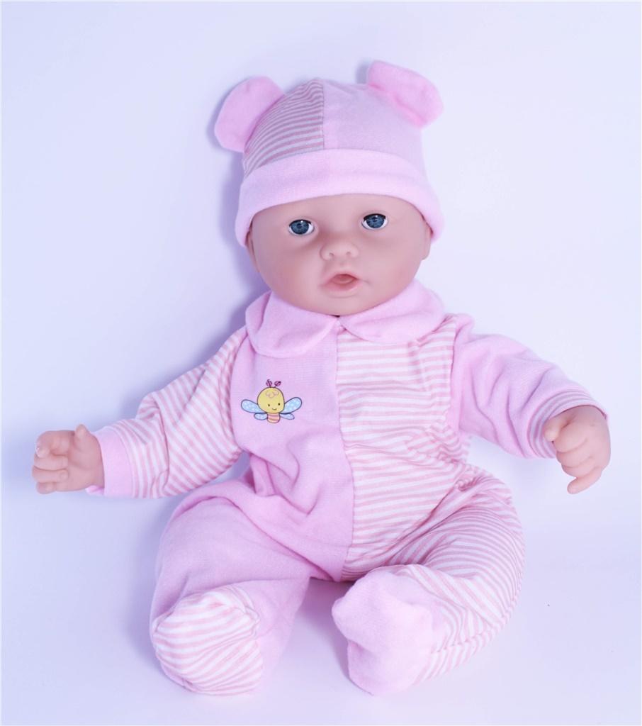 Lalka która, śmieje się, płacze, kiedy ssie butelkę zamyka i otwiera oczy i rusza policzkami, wydając odgłos ssania.