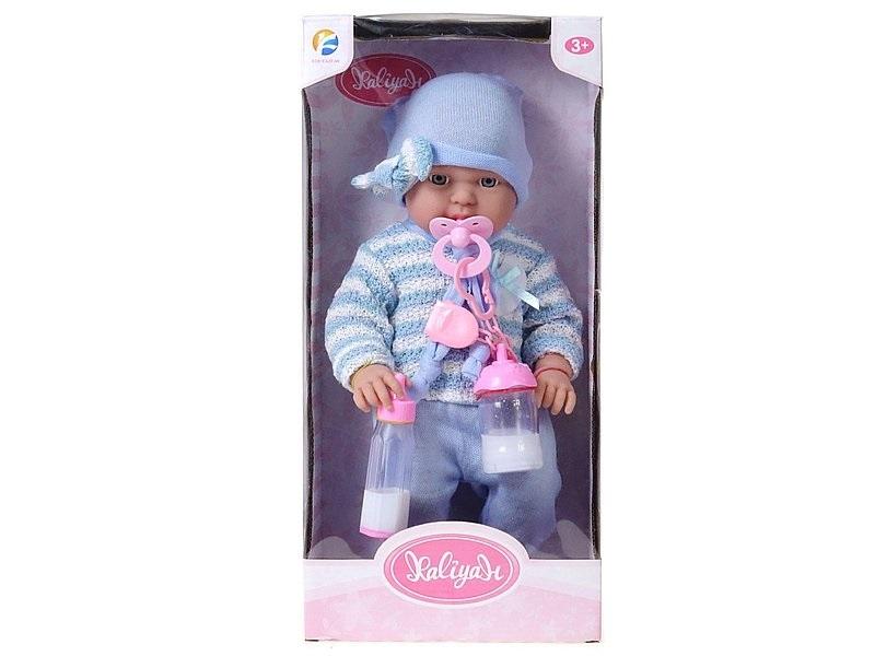 Lalka bobas 45cm z akcesoriami - smoczek i butelka, twardy tułów.