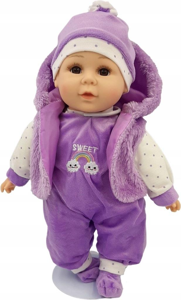 Wysokość lalki 35cm. Lalka mówi i śpiewa po polsku. Łatwy dostęp do modułu dźwiękowego.