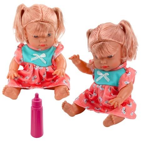 LALKA BOBAS Z BUTELKĄ I DŹWIĘKIEM 30 CM Urocza lalka bobas w kolorowej sukience i z butelką do karmienia to idealna zabawka dla dzieci, które lubią naśladować codzienne czynności dorosłych i opiekować się maluszkami. Lalka ma sympatyczną buzię, otwarte oczka i jasne włosy spięte w dwa kucyki, co dodaje jej uroku i sprawia, że prezentuje się jak prawdziwy bobas. Bobas ubrany jest w kolorową sukienkę z niebieską wstawką i kokardką - ubranko można zdejmować, co pozwala na przebieranie i tworzenie własnych stylizacji. W zestawie znajduje się także butelka do karmienia, która doskonale uzupełnia zabawę. Dodatkową atrakcją są efekty dźwiękowe - lalka wydaje realistyczne odgłosy dziecka, takie jak gaworzenie, śmiech czy płacz, co ułatwia dziecku wczucie się w rolę opiekuna i rozwija jego wyobraźnię oraz empatię. Wykonana z trwałego tworzywa sztucznego, lalka jest lekka, poręczna i bezpieczna - idealna do codziennej zabawy w domu, przedszkolu czy w podróży. SPECYFIKACJA: Rodzaj: Lalka bobas z dźwiękiem Wysokość lalki: 30 cm Materiał: Tworzywo sztuczne + tkanina Efekty: Dźwiękowe - odgłosy dziecka Ubranko: Sukienka z kokardką (zdejmowana) Ruchome elementy: Ręce, nogi, głowa ZAWARTOŚĆ ZESTAWU: 1 x lalka bobas 30 cm 1 x butelka do karmienia 3x AG13