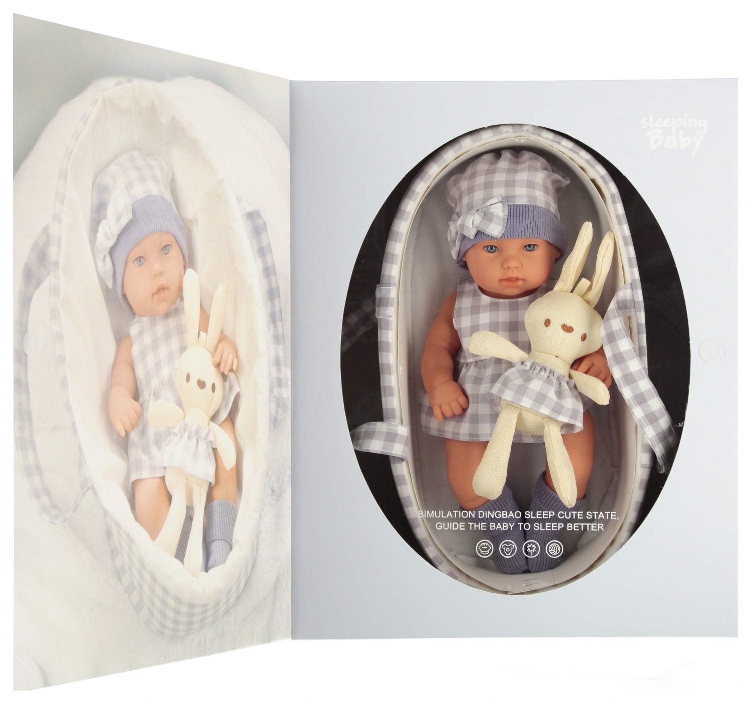 Zawartość zestawu: lalka bobas 35 cm z maskotką-Króliczek, nosidełko.