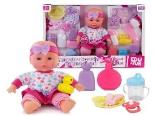 W ZESTAWIE: LALKA 32 CM., AKCESORIA: TALERZYK, SZTUĆCE, ŚLINIACZEK, SMOCZEK, 2 BUTELKI, GRYZAK, KACZUSZKA, PIELUSZKA, ZESTAW 9 KOSMETYKÓW, 2 KOSTKI, FUNKCJE: PO NACIŚNIĘCIU NA BRZUSZEK LALKA GAWORZY, WYM. OPK. 48 X 33 X 10 CM., BETERIE: 1 X CR 2032 3,2V, ZAŁ. DEMONSTRACYJNE, 2+
