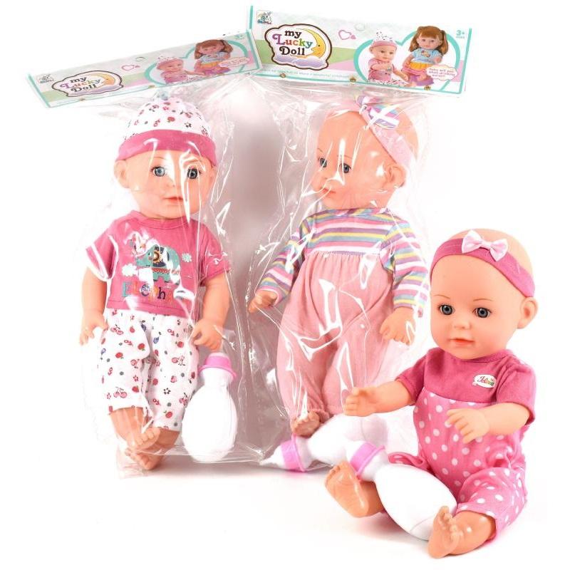 Lalka bobas z opaską lub czapką oraz butelką. 3 rodzaje.