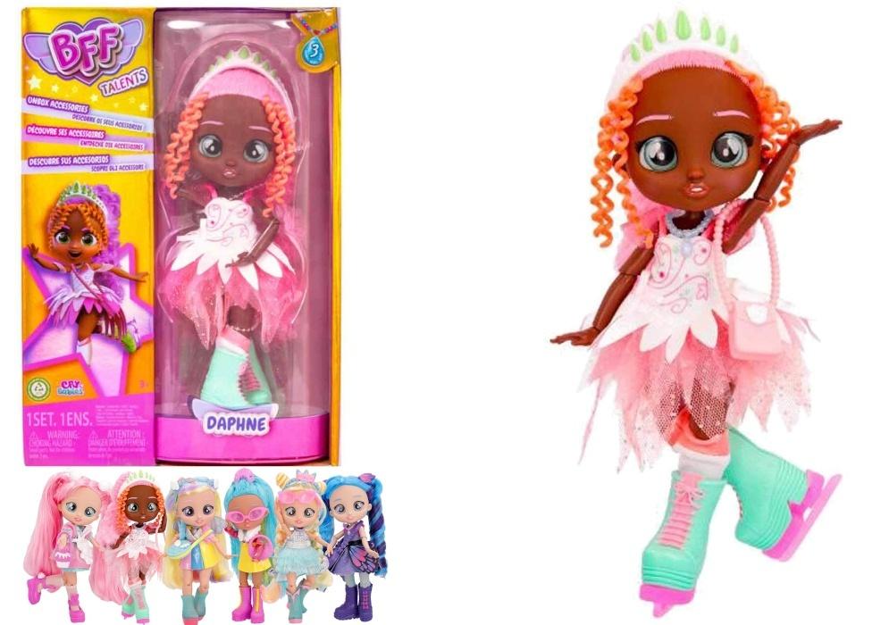 Poznaj Daphne baletową księżniczkę na lodzie z serii Cry Babies BFF Talents! Ta urocza lalka zachwyci Cię swoim wyjątkowym wyglądem inspirowanym światem łyżwiarstwa figurowego. Daphne ma kręcone, pomarańczowe włosy, duże zielone oczy i słodki uśmiech, który podkreśla jej charyzmę. Jej sukienka przypomina delikatne płatki kwiatów, a diadem na głowie dodaje jej blasku.