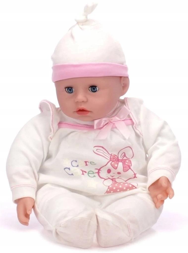Śliczna, duża lalka typu bobas z miękkim tułowiem, z czapeczką. Śpiewa piosenki: "Pieski małe dwa", "Jesteśmy jagódki", "My jesteśmy krasnoludki" oraz mówi, wita się, prosi żeby ją przytulić i ukołysać do snu, zachęca do zabawy, pyta o obiadek.