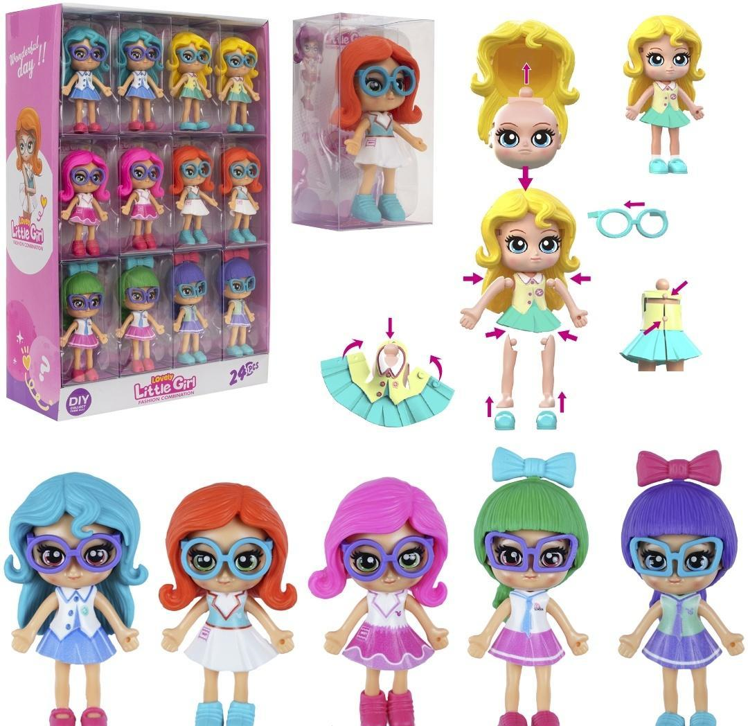 Kreatywne Lalki "Wonderful Little Girl" DIY - Stwórz Własną Stylizację! Przedstawiamy urocze lalki "Wonderful Little Girl" z serii DIY (Zrób To Sam), które pozwalają dzieciom na samodzielną zmianę fryzur, ubrań i akcesoriów! Ten zestaw to idealna propozycja dla małych kreatorek, które uwielbiają modę i personalizację zabawek. Cechy produktu: Zestaw DIY: Lalki są zaprojektowane w taki sposób, aby dzieci mogły łatwo zmieniać ich wygląd. Elementy takie jak włosy, bluzki, spódniczki i buciki są zdejmowalne i wymienne (jak pokazano na instrukcji rozłożenia lalki na zdjęciu), co pozwala na tworzenie niezliczonych kombinacji. Wiele Wariantów: W ofercie znajduje się wiele różnych lalek, każda z unikalnym kolorem włosów (np. niebieskie, rude, różowe, zielone, fioletowe), ubrań i okularów. Dzięki temu dzieci mogą zbierać i mieszać elementy, tworząc swoje wymarzone stylizacje. Modne Akcesoria: Każda lalka ma stylowe, duże okulary w dopasowanym kolorze, które dodają jej charakteru. Ubranka są w pastelowych odcieniach, z motywami szkolnymi lub casualowymi. Rozwój Kreatywności: Zabawka doskonale rozwija kreatywność, wyobraźnię i zdolności manualne. Dzieci uczą się o kolorach, kształtach i dopasowywaniu elementów, jednocześnie bawiąc się w stylistów. Wysoka Jakość: Lalki wykonane są z trwałego i bezpiecznego dla dzieci tworzywa sztucznego. Opakowanie Zestawu: Lalki są dostępne w zbiorczym display'u (24 sztuki), który doskonale sprawdzi się w sklepach. Każda lalka jest również pakowana pojedynczo w przezroczyste pudełeczko lub blister, co ułatwia ekspozycję i zakup pojedynczych sztuk. Wiek: Produkt przeznaczony dla dzieci w wieku 3 lat i starszych (zgodnie z oznaczeniem "3+" na opakowaniu). Wielkość opakowania: 10x5x6 cm Idealna dla: Dzieci uwielbiających lalki i zabawy w modę. Rozwijania zdolności manualnych i kreatywności. Zbierania kolekcji i mieszania stylów. Prezentu na urodziny, Dzień Dziecka czy inne okazje. Pozwól swojemu dziecku stać się prawdziwym projektantem mody z lalkami "Wonderful Little Girl" DIY i obserwuj, jak rozwija swoją wyobraźnię!