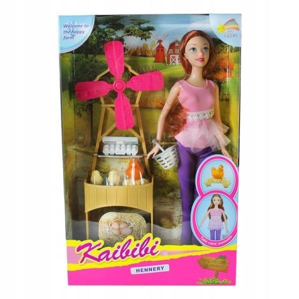 Lalka z małym kurnikiem i kurkami. W baśniowym opakowaniu, które przyciągnie uwagę dziewczynek, umieszczono lalkę ubraną w modną stylizację (bluzka z elementami tiulu, legginsy i białe buty). Na twarzy postaci znajduje się delikatny makijaż. Jej brązowe włosy są upięte. Do zestawu dołączono akcesoria. Jest to duży kurnik z obrotowym wiatrakiem, tekturka z grafiką jajek, figurki kurek i dwa pojemniki. Dziecko może się bawić w opiekę nad małą farmą.