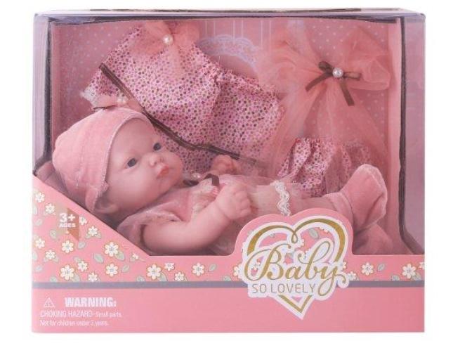 25,5 cm centymetrowa gumowa lalka w różowym wdzianku z akcesoriami