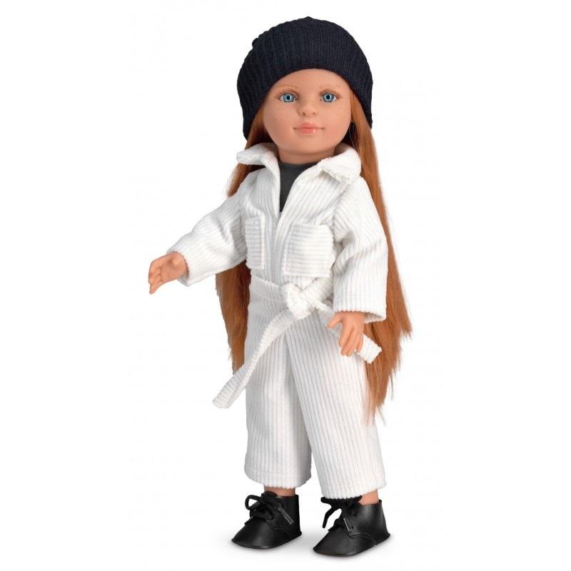 Jeśli dziewczynka przywiązuje szczególną uwagę do własnego outfitu, z pewnością zachwyci się strojem lalki hiszpańskiej Nina 42118 z kolekcji Magic Baby. Łatwy do zdjęcia ciepły, biały kombinezon wiązany paseczkiem jest subtelnie ozdobiony dwiema kieszonkami. Na chłodne dni przyda się grubsza czapka. Całość uzupełniają skórzane, wiązane, czarne buciki.