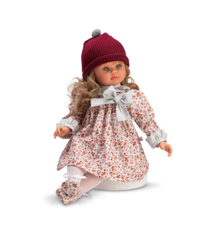Jeśli Twoja pociecha marzy o dużej ślicznej lalce z gęstymi, długimi blond włosami, zaproponuj jej lalkę hiszpańską Pepę cenionej marki Asi. Zaprojektowany dla dzieci w wieku od 3 lat, model 0287940 ma aż 57 cm wysokości. Świetnie nadaje się do przebierania, tworzenia oryginalnych fryzur oraz wożenia w spacerówce dla lalek. Dlaczego lalka hiszpańska Pepa 0287940 jest wyjątkowa? Zachwycająca urodą, dopracowana w najdrobniejszym szczególe lalka hiszpańska z bestsellerowej serii Pepa renomowanej marki Asi z pewnością spodoba się małej kolekcjonerce oryginalnych i unikalnych zabawek. Wysoka jakość wykonania, wygląd przypominający prawdziwą dziewczynkę i szyty ręcznie, modny strój to tylko niektóre z wyróżników lalki hiszpańskiej Asi 0287940. Odkryj pozostałe, istotne detale: winylowy materiał, z którego wykonane są głowa i kończyny jest delikatny w dotyku i delikatny jak skóra dziecka, miękki, materiałowy tułów, ramiona i uda wypełnione naturalną wyściółką, sprawiają, że lalka hiszpańska Pepa jest lżejsza i doskonała do przytulania, wyglądające jak autentyczne, stale otwarte niebieskie oczy są opatrzone długimi rzęsami i delikatnie zarysowanym łukiem brwiowym, śliczne usta i rumieńce na policzkach dodają lali uroku, długie, gęste, kręcone blond włosy są idealne do czesania i upinania. Lalka hiszpańska Pepa ma ruchomą głowę. Nóżki są w pozycji lekko ugiętych kolan, co czyni ją idealną do przewożenia w spacerówce. Model Asi 0287940 można także posadzić, opierając o fotel lub łóżeczko. Poznaj detale stroju Pepy 0287940 hiszpańskiej marki Asi! Lalka hiszpańska Asi Pepa 0287940 prezentuje się zachwycająco, ponieważ ubrana jest w komplet stylowych, szytych ręcznie ubranek: rozkloszowana, bawełniana sukienka w urocze kwiatuszki została wykończona falbankowym kołnierzykiem i mankietami, jasnoszara kokardka dodaje outfitowi elegancji, białe rajstopki, miękkie wiązane buciki oraz ciepła bordowa czapeczka z pomponem dopełniają stylowy look. Duża lalka hiszpańska z miękkim brzuszkiem doskonały pomysł na prezent dla dziewczynki! Szukasz jedynej w swoim rodzaju lalki hiszpańskiej dla miłośniczki oryginalnych zabawek? Wybierz na prezent zaprojektowaną i ręcznie malowaną w Hiszpanii Pepę 0287940. Zapakowana jest ona w stylowo prezentujące się, solidne pudełko w biało-różowej kolorystyce. Do kompletu możesz dobrać dodatkowe zestawy ubranek, które zostały uszyte specjalnie dla lalek hiszpańskich z serii Asi Pepa.