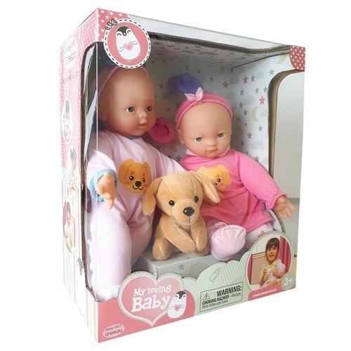 Lalki to nieodzowny element każdej dziewczynki. Uczą opiekuńczości oraz wrażliwości. Zestaw zawiera 2 lalki, 2 smoczki oraz dołączony jest słodki, brązowy piesek, który urozmaici zabawę.