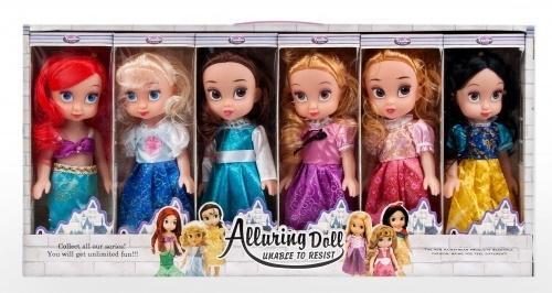 Lalki pakowane są w kompletach. Lalki występują w sześciu różnych rodzajach, swoim wyglądem nawiązując do znanych bajkowych księżniczek. Wszystkie posiadają kolorowe, balowe stroje. Całość wykonana z plastiku, tworzywa sztucznego oraz materiału.