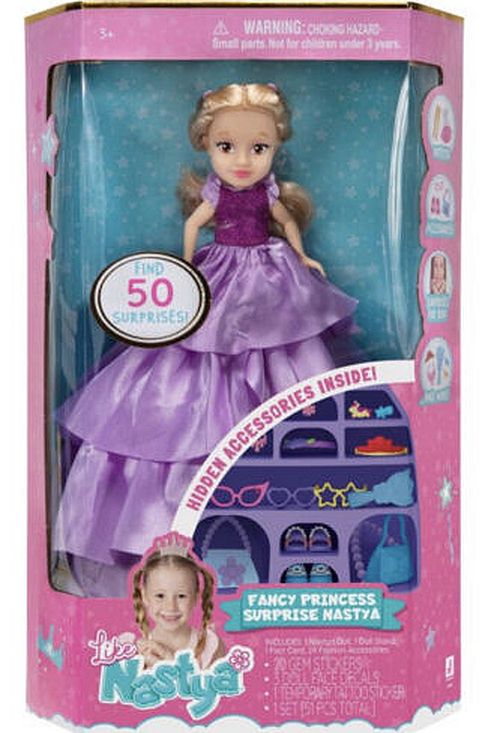 Zainspirowana przez hitowy kanał YouTube dla dzieci ?Like Nastia?, ta urocza 8? Lalka Nastia jest idealna dla każdej słodkiej i pewnej siebie dziewczynki w Twoim życiu. Ta 8-calowa lalka ma w zestawie stojak wielokrotnego użytku z ukrytymi akcesoriami, które maskują się jako wspaniała suknia balowa! Dodaj modne akcesoria, takie jak tiary, buty, okulary i inne do swojej kolekcji "Like Nastia". Kiedy skończysz zbierać akcesoria, ubierz lalkę Nastię w 4 stylowe ubrania i niezliczone dodatki.