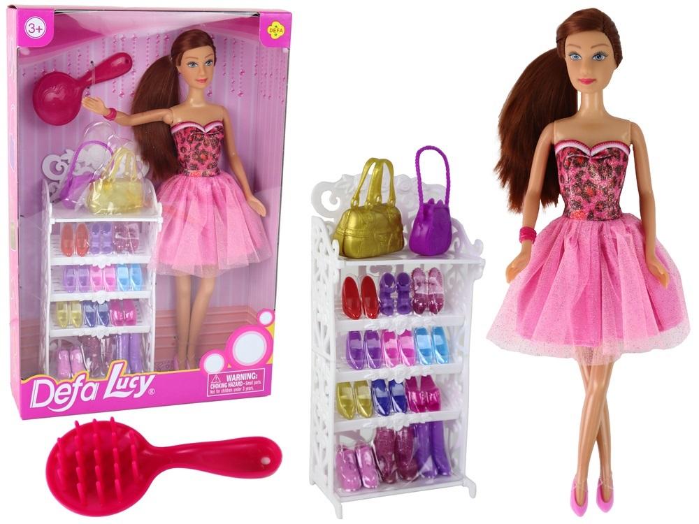 Zawartość zestawu : - lalka Lucy- 13 par butów- 2 torebki- szafka na buty i torebki- sukienka - szczotka do włosów - oryginalne pudełko