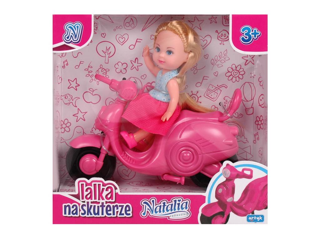 W zestawie lalka, skuter z ruchomymi kółkami.
