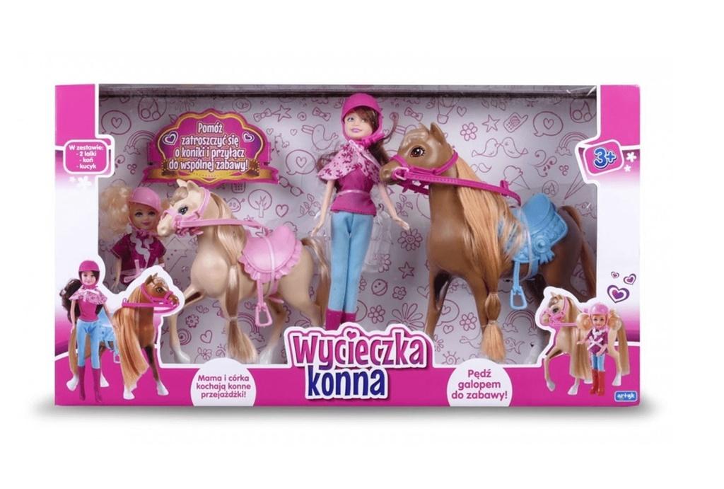 Lalka 29 cm, w zestawie: 2 lalki, koń, kucyk.