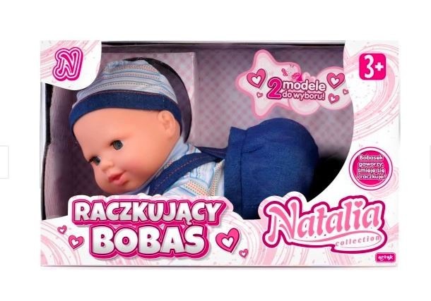 W ZESTAWIE: LALKA 32 CM., FUNKCJE: ŚMIEJE SIĘ, GAWORZY I PŁACZE, RACZKUJE, PRZEWRACA SIĘ, SAMODZIELNIE PODNOSI SIĘ I RACZKUJE DALEJ, WYM. OPK: 35,5 X 22 X 19 CM., BATERIE: 3 X AA BRAK W ZESTAWIE, 3+