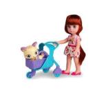 W zestawie: lalka 16 cm, wózek/nosidełko, kotek, miseczka, kuweta, akcesoria do pielęgnacji.