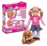 Lalka 42 cm, mówi po polsku. Piesek szczeka, rusza główką, podnosi uszy do góry, cieszy się, poszczekuje oraz reaguje na kostkę.