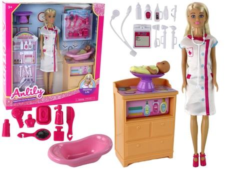 Lalka Dla Dzieci Anlily Pielęgniarka Akcesoria Zestaw Lalka Anlily, która z pewnością zachwyci każde dziecko! Ta wyjątkowa lalka ma długie blond włosy, które można czesać i układać według własnego pomysłu. Jej niebieskie oczy dodają uroku, a ubranie w postaci białego fartucha-sukienki pielęgniarki z różowymi i niebieskimi detalami nadaje jej wyjątkowego stylu. Na nogach ma urocze różowe buty na obcasie, które dodają jej elegancji. W zestawie z lalką znajdziesz wiele akcesoriów i elementów, które pozwolą na stworzenie fascynujących scenek i zabaw w gabinecie lekarskim. Stetoskop, który pomoże zrozumieć tajniki medycyny, mała laleczka dziecka w żółtym ubranku, fioletowa waga, różowa wanienka dla dziecka oraz pomarańczowa szafa, na której można przechowywać wszystkie akcesoria. To jednak nie wszystko! Zestaw zawiera także liczne akcesoria pielęgniarskie w kolorze białym, takie jak termometr, butelka i wiele innych. Dodatkowo, znajdziesz różowe elementy przydatne w łazience, takie jak lusterko, perfumy, suszarka, mydło, grzebień i wiele innych. Wymiary lalki to 30 cm x 7 cm x 4 cm, a wielkość lalki dziecka wynosi 6,5 cm. Szafa ma wymiary 15 cm x 5 cm x 10 cm, a opakowanie całości to 32 cm x 31 cm x 6 cm. Ten zestaw to nie tylko zabawka, ale także narzędzie do rozwijania wyobraźni, empatii i kreatywności dziecka. Pozwól swojemu dziecku wejść w rolę pielęgniarki i baw się razem z lalką Anlily! Wymiary lalki: 30 cm x 7 cm x 4 cm Wymiary szafy: 15 cm x 5 cm x 10 cm Wymiary opakowania: 32 cm x 31 cm x 6 cm Posiada certyfikat CE, ponadto jest zgodny z normą EN71. Zabawka przeznaczona jest dla dzieci powyżej 3 roku życia.
