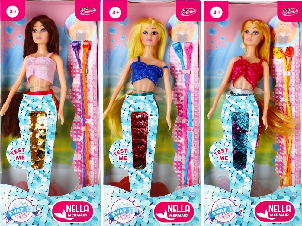 Zalety produktu: rozwijanie wyobraźni dziecka. Każda dziewczynka lubi bawić się lalkami. Lalka Syrenka od MEGA CREATIVE to fantastyczna zabawka, którą pokocha każda dziewczynka. Zabawka wykonana z plastiku, gumy i materiału, ogon Syrenki występuje w trzech wersjach kolorystycznych : złoto różowy, niebiesko różowy, fioletowo biały. lalka w komplecie ma dodatkowe 2 warkoczyki, którymi można przyozdobić jej piękne długie blond lub brązowe włosy. Zawartość zestawu: lalka Syrenka 30cm, 2x warkocz ze spinką do włosów. Wymiary/waga/baterie wymiary produktu (dł. x wys. x gł.)[cm] 8x30x4, waga produktu bez opakowania [kg]: 0,11 kg, Wymiary opakowania (dł. x wys. x gł.) [cm] 14x33x5, waga produktu (kg.) 0,16 kg. Produkt przeznaczony dla dzieci w wieku: 3+.