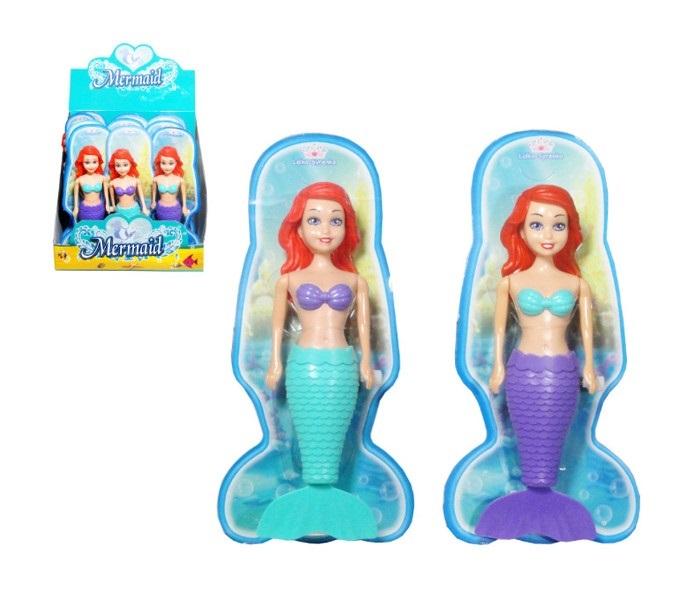 Zabawka wodna syrenka. Po nakręceniu zabawka porusza ogonem dzięki czemu może poruszać się na wodzie. Podane wymiary są wymiarami opakowania. Blister z polskim napisem.