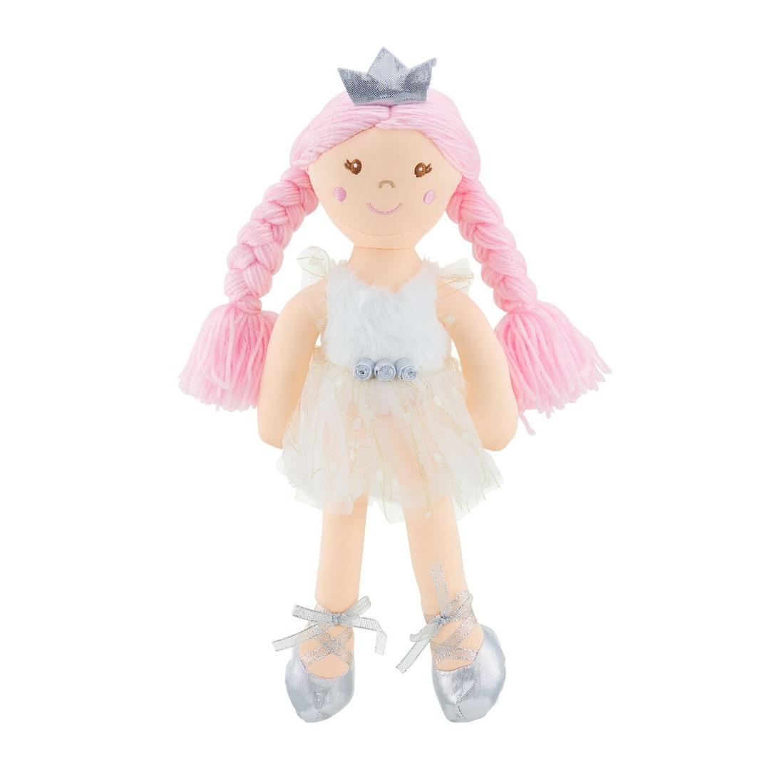 LALKA SZMACIANKA KSIĘŻNICZKA 1/36 Lalka szmacianka wróżka to urocza zabawka, która zachwyca delikatnością i fantazyjnością. Wykonana jest z miękkiego materiału, co sprawia, że jest przyjemna w dotyku i łatwa do przytulania. Wróżka ma piękną, tiulową sukienkę ,dodaje jej lekkości i magicznego uroku. Sukienka jest pełna falbanek, które tworzą efekt zwiewności, jakby wróżka tańczyła w powietrzu. Na głowie lalki znajduje się delikatna korona, która podkreśla jej rolę magicznej postaci. Jej włosy są różowe, zaplecione w dwa warkocze. Oczy lalki są wyszywane a buzia radosna. Ta zabawka to doskonały wybór dla każdej dziewczynki, która marzy o magicznych przygodach i chce mieć swoją własną wróżkę do zabawy.