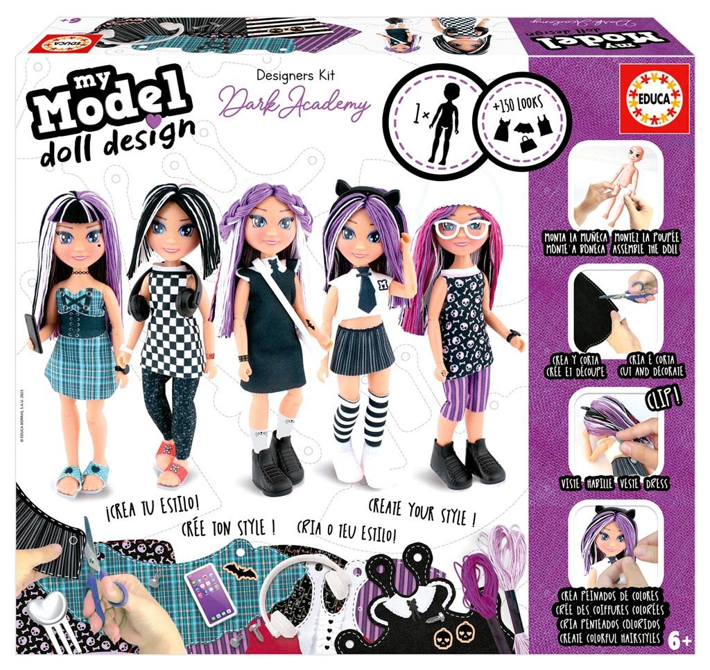 Twoja lalka, twój styl! Zostań projektantem i stylistą dzięki temu kreatywnemu zestawowi. Seria My Model (Lalka ubieranka) zawiera lalkę do złożenia, która ma ruchomą głowę, ramiona, łokcie, nadgarstki, biodra i kolana, mnóstwo modnych dodatków oraz kolorowe włosy! Najpierw złóż lalkę, gdy będzie już gotowa, czas na stylizację (ponad 150 możliwości)! Wytnij tkaninę według wzorów. Nie potrzeba igły i nici, wystarczy przypiąć ubrania do lalki. To bardzo proste! Stwórz różne fryzury, obcinając włosy i łącząc kolory! Gdy lalka jest już gotowa, można się nią bawić jak każdą inną. ZAWARTOŚĆ: lalka do złożenia tkanina z nadrukowanymi wzorami ponad 23 modne akcesoria naklejki klipsy do ubrań wełna do włosów dziurkacz instrukcja