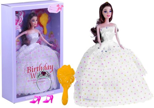 Opakowanie Lalka urodzinowa suknia buty korona szczotka biała