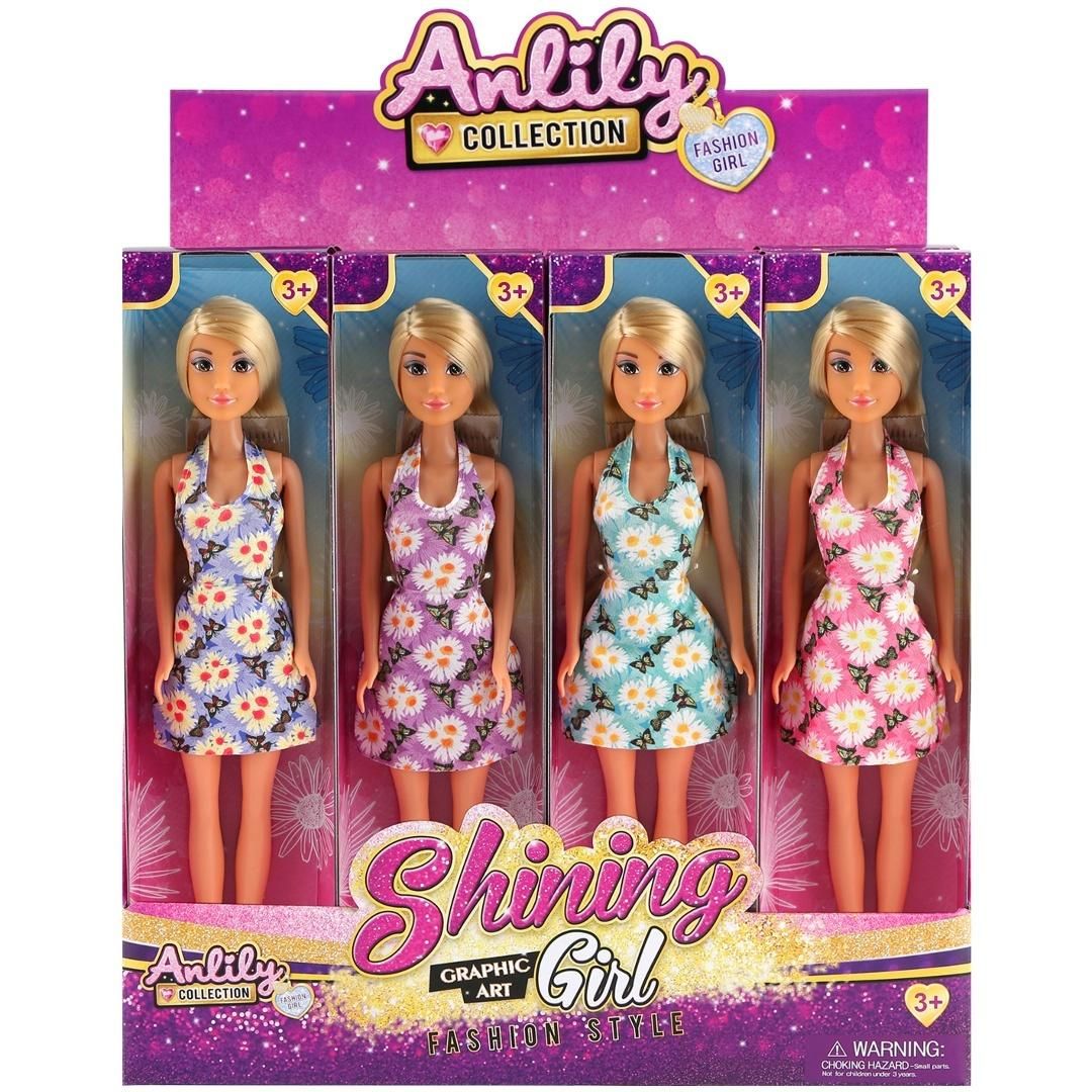 Lalki "Anlilly Collection - Shining Girl" - Gotowe na Kwiatową Przygodę! Przedstawiamy uroczą kolekcję lalek "Anlilly - Shining Girl", które wniosą radość i styl do każdej zabawy! Te piękne lalki, ubrane w modne sukienki w kwiatowe wzory, są idealne dla małych stylistek i miłośniczek kreatywnych opowieści. Cechy produktu: Cztery Unikalne Style: Zestaw zawiera cztery lalki, każda z identyczną, klasyczną fryzurą w kolorze blond, ale w innej, letniej sukience w kwiatowy wzór. Dostępne warianty kolorystyczne sukienek to: o Wzór kwiatowy na granatowym tle o Wzór kwiatowy na fioletowym tle o Wzór kwiatowy na miętowym tle o Wzór kwiatowy na różowym tle Dzięki temu dzieci mogą tworzyć różnorodne stylizacje i opowieści. Modny Design: Sukienki lalek są zaprojektowane w modnym, letnim stylu z wiązaniem na szyi (halter-neck), co dodaje im uroku i świeżości. Lalki zachęcają do zabawy w modę i stylizację. Rozwój Wyobraźni: Lalki inspirują do kreatywnej zabawy w odgrywanie ról, rozwijają wyobraźnię i pomagają dzieciom tworzyć własne, fantastyczne historie, np. o przyjęciach w ogrodzie, letnich spacerach czy spotkaniach z przyjaciółmi. Wykonane z Myślą o Dzieciach: Lalki są wykonane z bezpiecznych materiałów, odpowiednich dla dzieci. Wiek: Produkt przeznaczony dla dzieci w wieku 3 lat i starszych (zgodnie z oznaczeniem "3+" na opakowaniu). Atrakcyjne Opakowanie: Lalki są prezentowane w estetycznym, kartonowym pudełku z okienkami, które eksponuje każdą lalkę z osobna. Na opakowaniu widnieje nazwa kolekcji "Anlilly Collection - Fashion Girl" oraz "Shining Girl - Graphic Art - Fashion Style", co podkreśla ich modowy charakter. Wielkość opakowania: 32x8x5 cm Idealna dla: Dzieci uwielbiających lalki i zabawy w stylizowanie. Rozwijania wyobraźni i kreatywności. Prezentu na urodziny, Dzień Dziecka lub inną okazję. Urozmaicenia kolekcji lalek. Pozwól swojemu dziecku zanurzyć się w świat mody i wyobraźni z lalkami "Anlilly Collection - Shining Girl"!