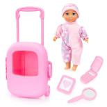 Ten uroczy zestaw zawiera urocza lalkę i akcesoriami do zabawy, w tym ramkę na zdjęcia, telefon komórkowy i lusterko. Raczkę malej walizki podróżnej można łatwo wysunąć do transportu, dzięki czemu dzieci mogą ją ciągnąć bez wysiłku. Walizka ma również boczny uchwyt do przenoszenia. Walizkę można zamknąć, aby wszystko bezpiecznie przechowywać. Zestaw zawiera lalkę (28 cm) o miękkim ciele i uroczej twarzy, idealna do przytulania i kochania. Telefon komórkowy, lusterko i mała ramka na zdjęcia umożliwiają dalszą zabawę w odgrywanie ról. Lalkę i akcesoria można schować do walizki na czas transportu lub przechowywania.