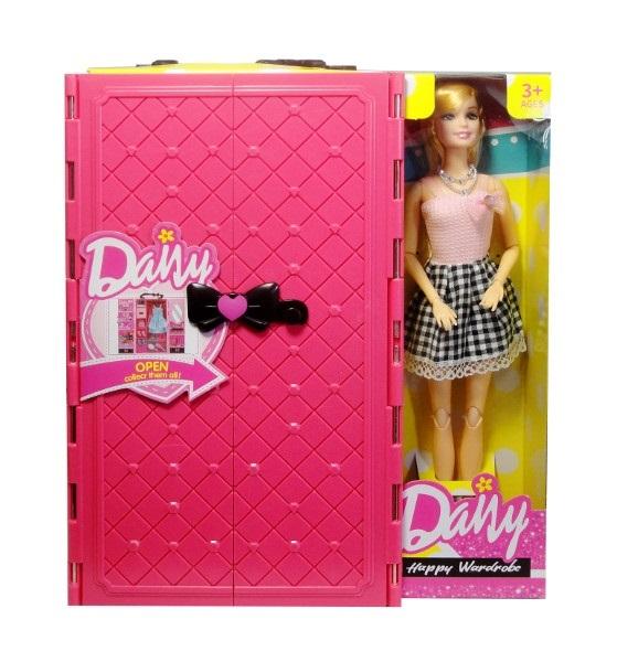 Lalka typu Barbie w zestawie z kolorową szafą dla lalek, która kryje w sobie wiele niespodzianek. Posiada w swoim wyposażeniu: lustro, wieszaki, sukienki, buty, torebki i biżuterię. Produkt zapakowany w przezroczysty worek. Zabawka dla dzieci od 3 lat. Podane wymiary są wymiarami produktu
