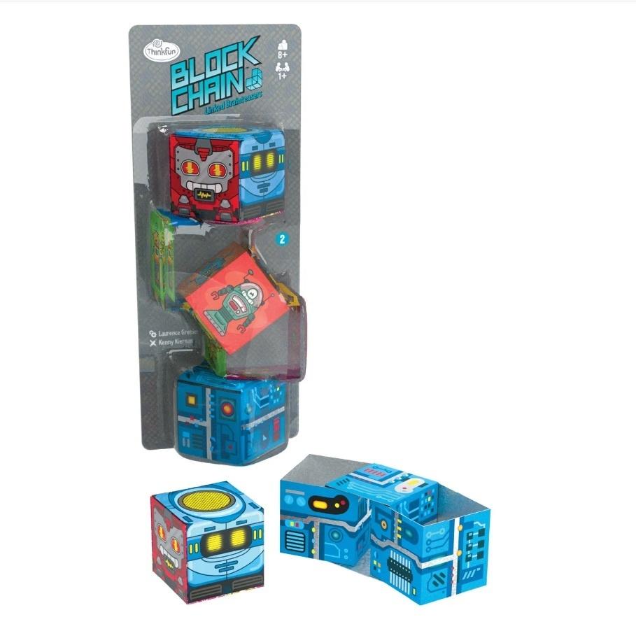 Poznaj wyjątkową łamigłówkę ThinkFun Block Chain w futurystycznej odsłonie z motywem robotów. To inteligentna zabawka, która łączy prostą formę z wymagającym wyzwaniem połączone kostki tworzą elastyczny łańcuch, który możesz rozkładać, obracać i ponownie składać, aby dopasować właściwe wzory na wszystkich ściankach.