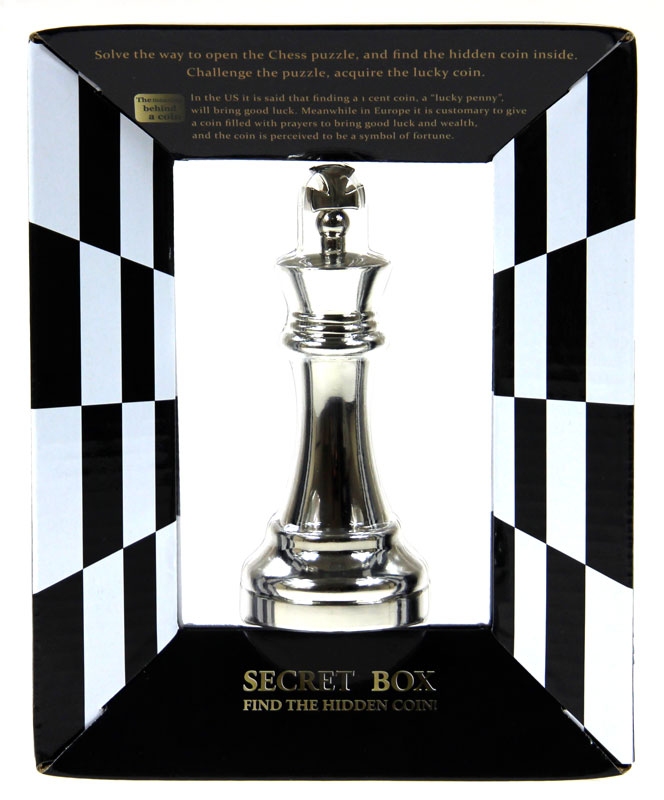 Szachy to strategiczna gra umysłowa, wymagająca skupienia i koncentracji. Aby rozwiązać łamigłówki z serii Szachy, również będziesz musiał odrobinę pogłówkować. Każda figura szachowa kryje w sobie szczęśliwą monetę. Twoim zadaniem jest ją odnaleźć. Spróbuj rozszyfrować tajny system zabezpieczeń - unikalny dla każdej figury. Podejmiesz wyzwanie? Przepięknie wykonane, metalowe figury szachowe to prawdziwy rarytas dla miłośników łamigłówek oraz dla miłośników klasycznej, znanej na całym świecie gry planszowej. Idealne na prezent dla kolekcjonerów. Spróbuj skompletować wszystkie figury i... zagrać w Szachy. Nic nie stoi na przeszkodzie! Monety znajdujące się wewnątrz figur, posiadają oryginalne wzory - każda figura inny. Wzory znajdują się zarówno na awersie, jak i rewersie. Zdjęcie monety nie przedstawia jej rzeczywistej wielkości (średnica monety - 12 mm). Hanayama od ponad siedemdziesięciu lat jest znanym producentem i sprzedawcą zabawek, tradycyjnych gier i łamigłówek. Od samego początku kładł wielki nacisk na twórcze pomysły, wysoką jakość i przyjazną obsługę. Wszystkie prezentowane łamigłówki świetnie sprawdzają się w zróżnicowanym towarzystwie. Bawią, uczą, zmuszają do myślenia i uwolnienia twórczej wyobraźni. Pozwalają na znalezienie ""wspólnego języka"" ludziom w różnym wieku. Często pierwsze, przypadkowe z nimi ""spotkanie"" staje się początkiem wielkiej pasji i łączy całe rodziny wokół wspólnego hobby.