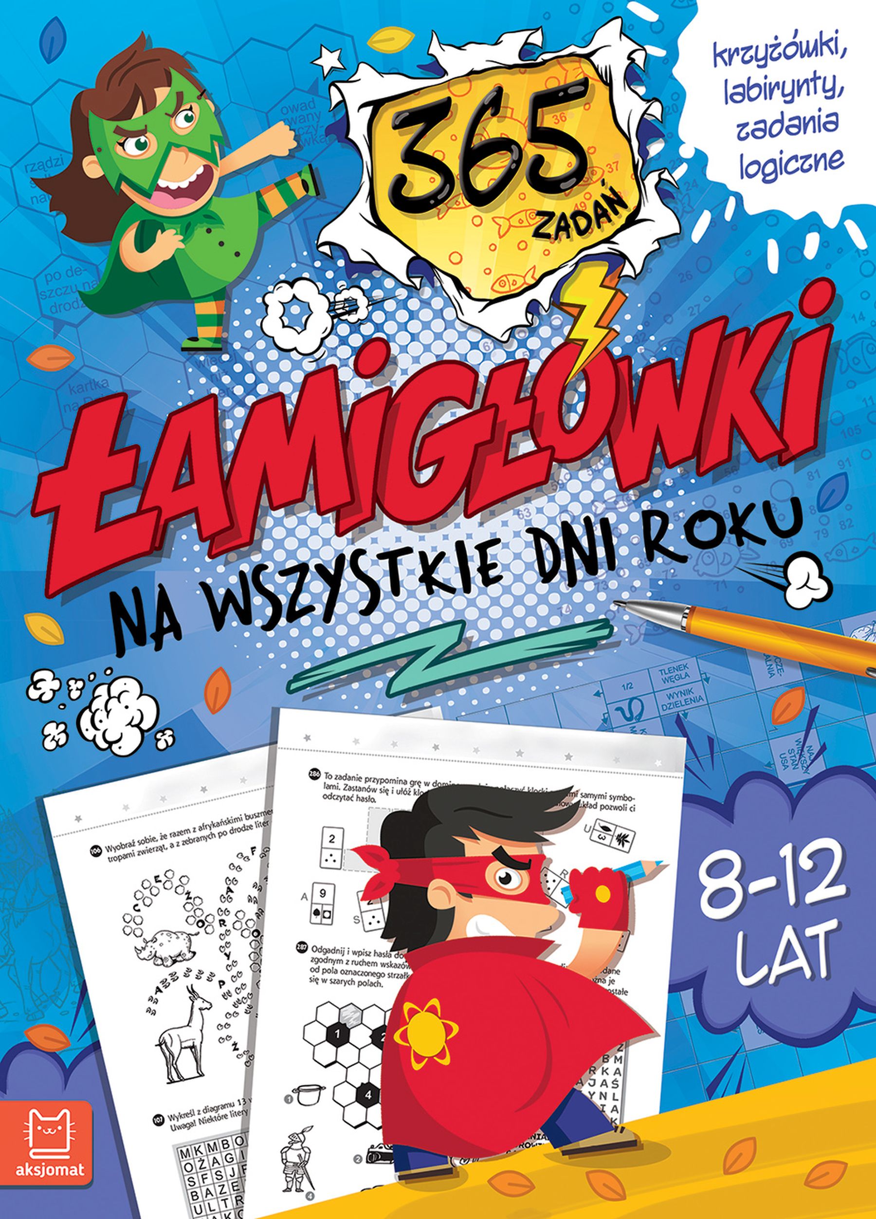 Zbiór łamigłówek na cały rok: na długie zimowe wieczory, na słoneczne wiosenne popołudnia, na upalne dni lata i deszczowe poranki jesieni, a wśród nich: labirynty, rebusy, krzyżówki i wykreślanki, zadania na spostrzegawczość oraz wymagające logicznego myślenia.