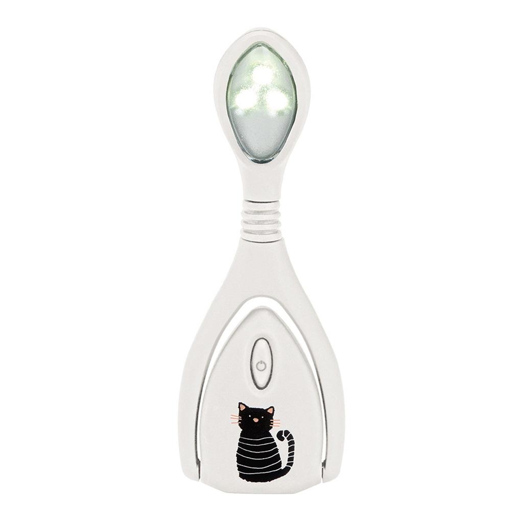 Lampka do czytania Lumi Plus w kolorze białym z uroczym czarnym kotem, wyraża pasję każdego miłośnika książek do czytania.Płynnie ściemniana lampka do czytania.Technologia SMD LED. Wysoka jakość wykonania.Zapewnia zarówno wysoki komfort czytania, jak i optymalną wydajność czytania dzięki silnej wiązce światła.Lekka głowica z trzema diodami ma elastyczną szyjkę do obracania o 360 .Wygodny klips do przymocowania na kartach książki, który w razie potrzeby postawienia, po złożeniu daje stabilną podstawę.Miękka i aksamitna w dotyku powierzchnia.Bateria zawarta w zestawie.Czas świecenia ok. 18 godzin.Elastyczna konstrukcja szyjki gwarantuje, że nie świeci prosto w oczy.Wymiary produktu: 4,5 cm x 13 cm x 2,3 cm.Wymiary opakowania: 6 cm x 15,8 cm 5 cm.