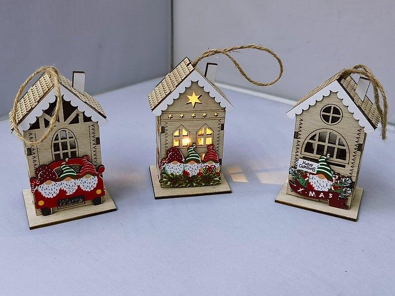 lampka ledowa z motywem świątecznym - domek z zawieszką 9,5x6x3,5cm, display 24szt; Box